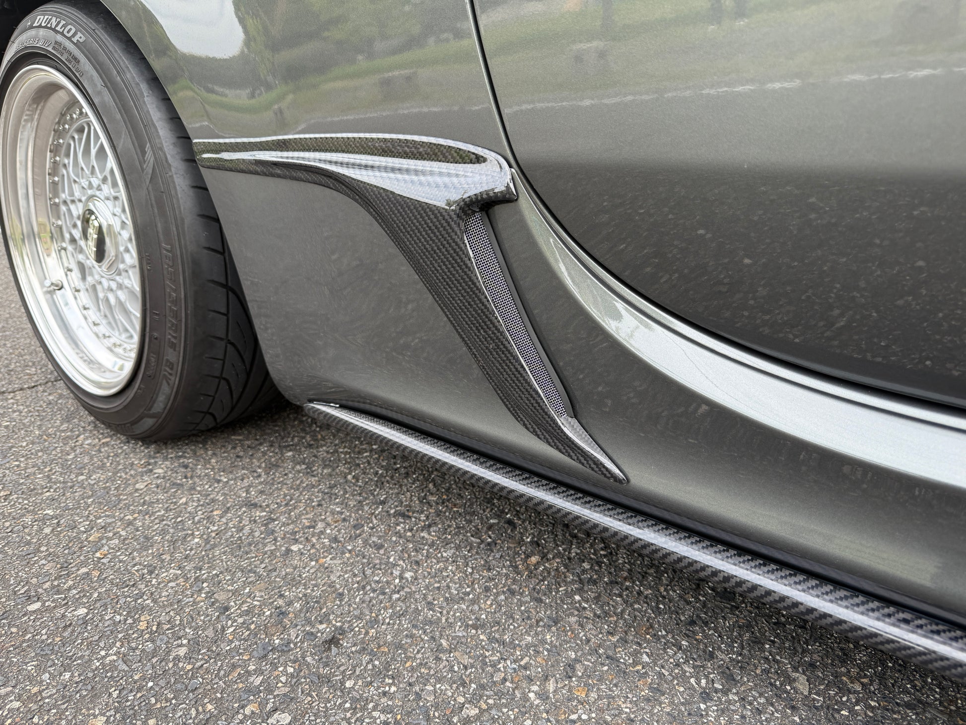 リアルカーボンは勿論、FRPのカラードタイプもカラーコードで全色オーダー可能です。素地FRPも選択可能でDIYでお好みのカッティングシートで仕上げる事も出来ます。純正スカートに貼るだけの簡単装着。